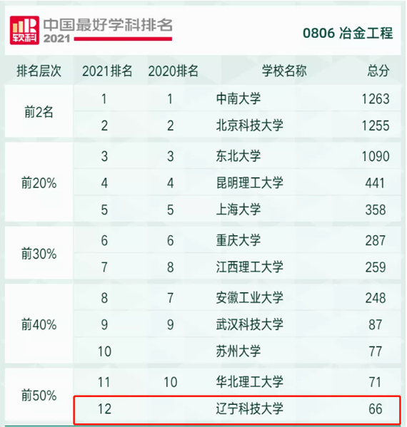 近年来,学校全力加强“双一流”建设,对标建设目标,强化学科特色发展,以化工、冶金学科为龙头,加强内涵建设,统筹学校资源,突出质量成效,不断优化学科专业布局,稳步提升安博官网线上平台质量和办学水平,学科建设成效逐步凸显。此次学校3个学科入围“2021软科中国最好学科排名”前50%,其中化学工程与技术学科2021排名72,进入前40%(2019排名78、2020排名87);冶金工程学科2021排名12,首次进入前50%;土木工程学科2021排名52,进入前40%(2020排名64)。