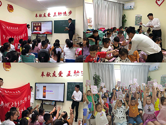 8月18日,辽科大新时代大学生理论宣讲团走进鞍山市高新区乐道社区,面向社区居民及小学生宣讲《中华人民共和国民法典》和《中华人民共和国未成年人保护法》。宣讲团成员经济与法律学院学生白钰仟详细介绍了《民法典》中有关未成年人权益保护的财产权利、家庭权利、自由和人格尊严的部分内容,并以案例讲解的形式着重宣讲了《民法典》新增亮点。宣讲团成员经济与法律学院学生王圣傑结合生活中的实际案例讲解了《未成年人保护法》相关法律知识,强调了家庭、学校、社会在未成年人保护方面应承担的责任和义务,也使小朋友们更加清楚地了解自己享有哪些权利,掌握正确保护自身权益的方式方法。宣讲员宣讲内容贴近生活,图文并茂、生动有趣,与现场的小朋友们频繁互动,赢得了阵阵掌声,并将《中华人民共和国未成年人保护法》送到小朋友们手中。