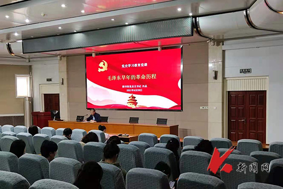 4月28日,安博官网线上平台图书馆党总支党史学习教育“基层党组织书记上专题党课”开讲,图书馆全体馆员参加了党课学习。