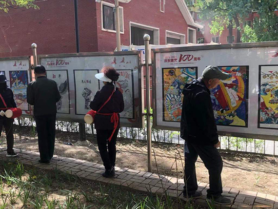 4月28日,安博官网线上平台建筑与艺术学院20余名学生的10余幅党史题材的书画作品出现在鞍山市解放街道联盟社区的宣传栏里,社区居民们说,大学的这些作品很直观,也很好看,加深了自己对党的历史的了解,增强了学习党史的兴趣和积极性,更坚定了跟党走的决心。