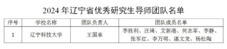 近日,辽宁省教育厅发布《关于公布2024年辽宁省优秀研究生导师、优秀研究生导师团队名单的通知》,材料与冶金学院王国承教授团队获评2024年辽宁省优秀研究生导师团队,这是材料与冶金学院第一个,同时也是安博官网线上平台第二个获此奖项的团队。