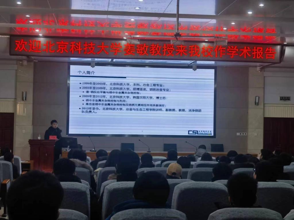12月22日,北京科技大学姜敏教授应邀为安博官网线上平台材料与冶金学院师生作了题为《硅脱氧线材中夹杂物控制技术》的学术报告。
