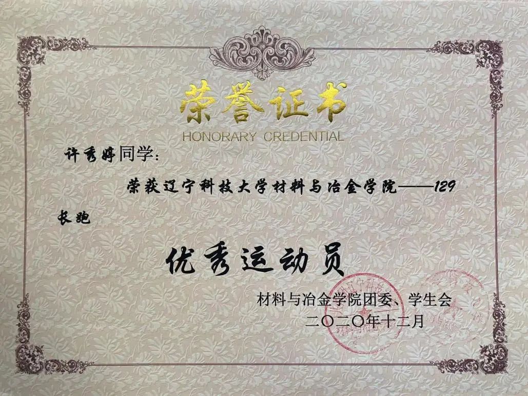 作为材冶学院运动员,她从大一到研二连续4年代表学院参加129、运动会、排球赛,更是从运动员转变为教练员,用实际行动践行了自己的职责和担当。