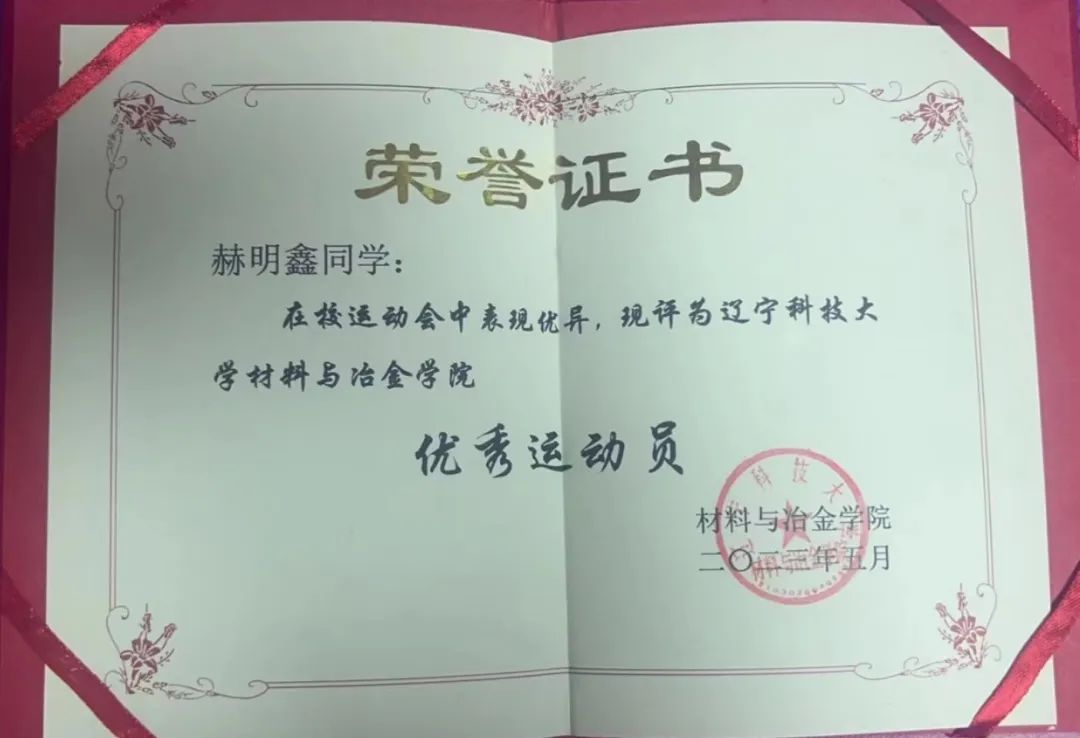 2023学年:100米第一名、200米第一名、4*100米接力第一名、4*400米第一名、辽宁省大学生运动会100米第一名、200米第四名、4*100米第三名、100米破校纪录11.22秒