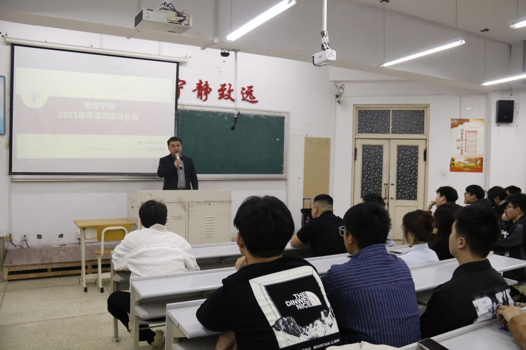 为提高电信学院2021级学生四级考试的整体通过率,学院于3月31日在博闻楼九合召开2021级英语四级动员会。会议由电信学院党委副书记由济恺担任主持,相关辅导员及2021级未通过四级考试的全体学生参加。
