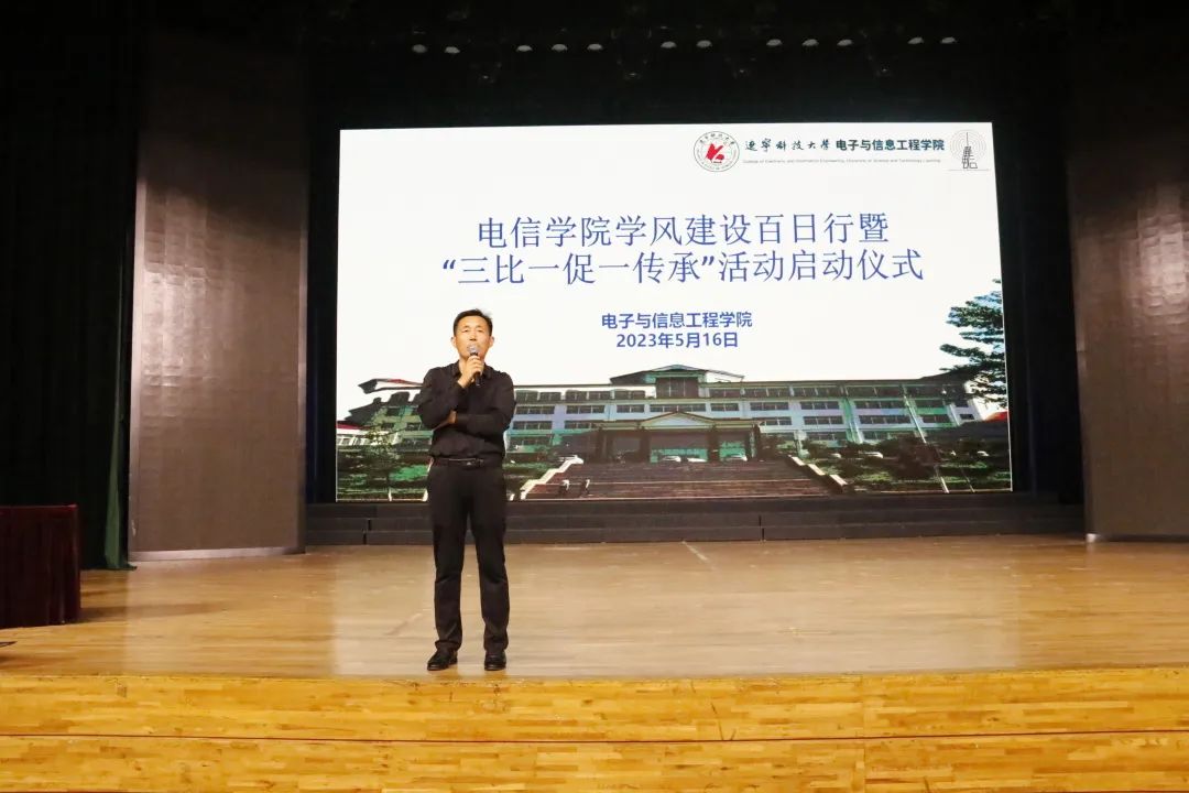 为深入学习贯彻习近平新时代中国特色社会主义思想,落实《安博官网线上平台进一步加强内涵建设 服务辽宁全面振兴新突破三年行动方案》要求,加强学风建设和文化建设,营造良好的育人环境,5月16日,电信学院于校礼堂举行学风建设百日行暨“三比一促一传承”活动启动仪式,此次活动由电信学院党委书记王会立主持,电信学院21、22级全体学生参加。