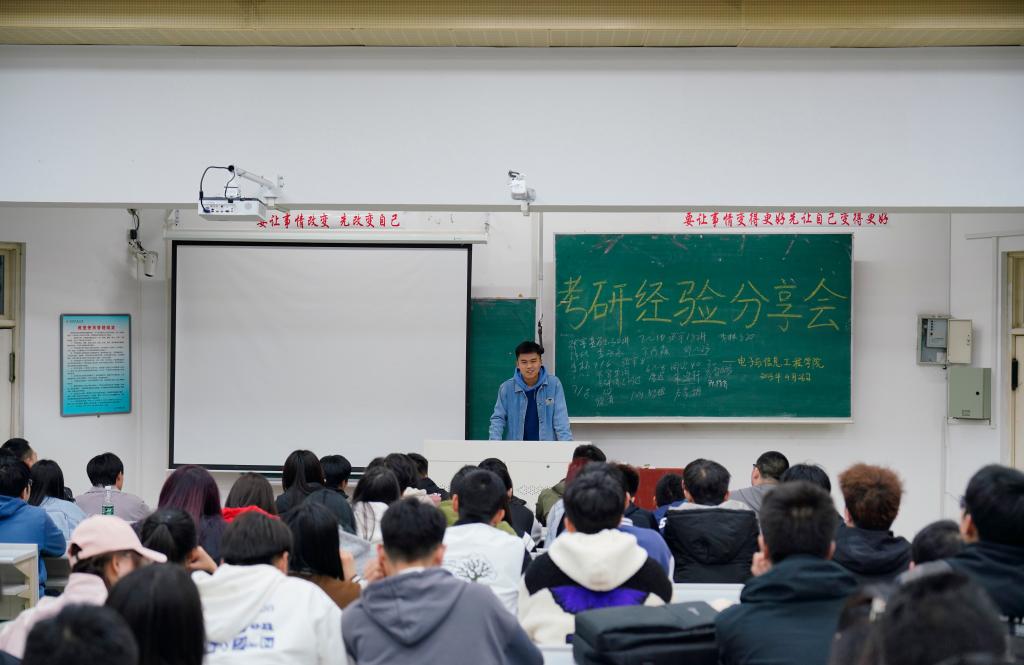 为帮助学生认清当前考研新形势,明确考研目标,掌握相关考研技巧,增强考研信心,电信学院于4月26日在博闻楼五合教室召开考研经验分享会。此次活动由19级考研成功的学生代表主讲,20、21级准备考研学生共计200余人参加会议。