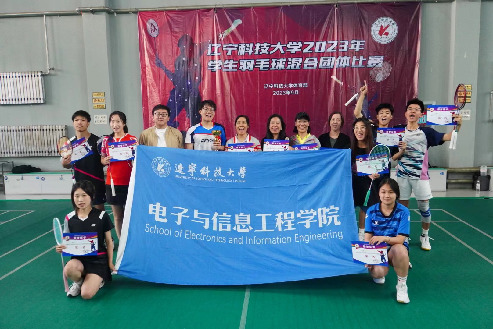 10月11日,电信学院羽毛球队在安博官网线上平台举办的2023年学生羽毛球混合团体比赛中以总比分3:2击败机械学院代表队,一举夺得冠军。