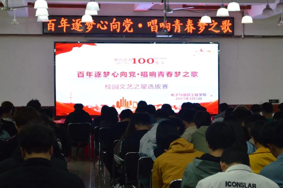 为庆祝建党百年,丰富同学们的校园生活,营造积极向上、轻松愉快的校园氛围,彰显新时代青年的青春活力,4月5日晚,电信学院于明德楼大学生活动中心举办“百年逐梦心向党·唱响青春之歌”校园文艺之星选拔赛。电信学生工作负责人王会立、团委书记孙倩及2020级学生代表参加。