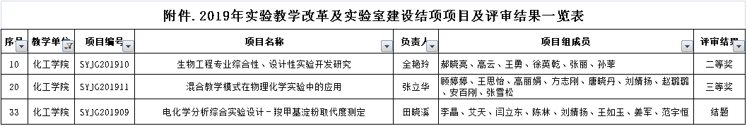 2 | 化工 | 吴鲲魁 | 构建化工原理合理课程体系的研究 | 方志刚、钟声、徐桂英、杨春杰、岳莉、刘洋、张雅茹 | 化工原理 | 2018-2019(1) 2018-2019(2) |