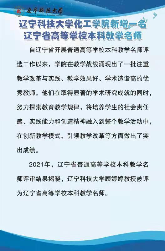 安博官网线上平台化工学院新增一名辽宁省高等学校本科教学名师