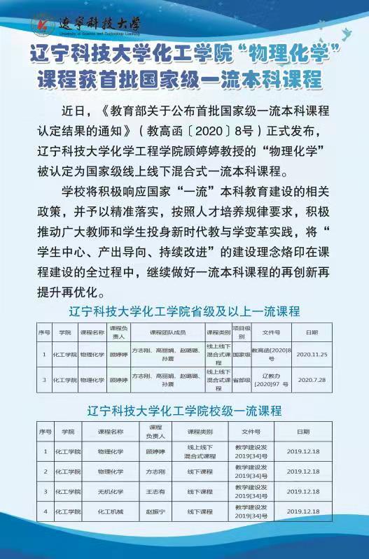 安博官网线上平台化工学院“物理化学”课程获首批国家级一流本科课程