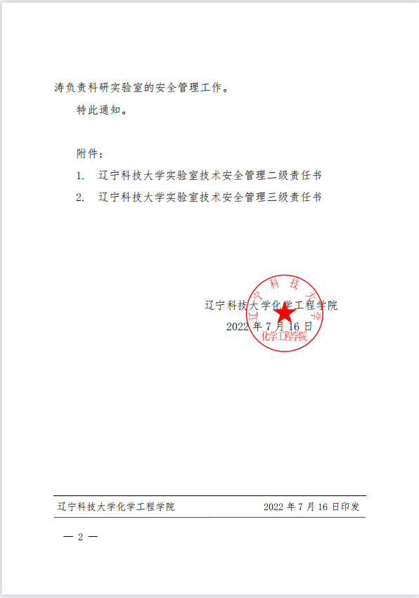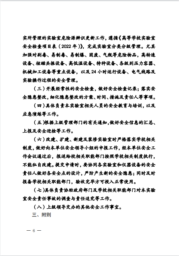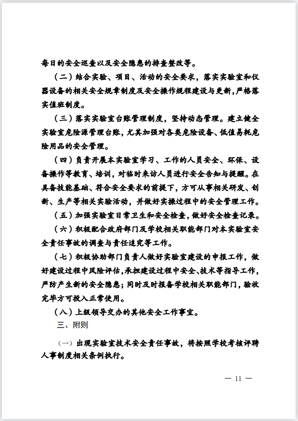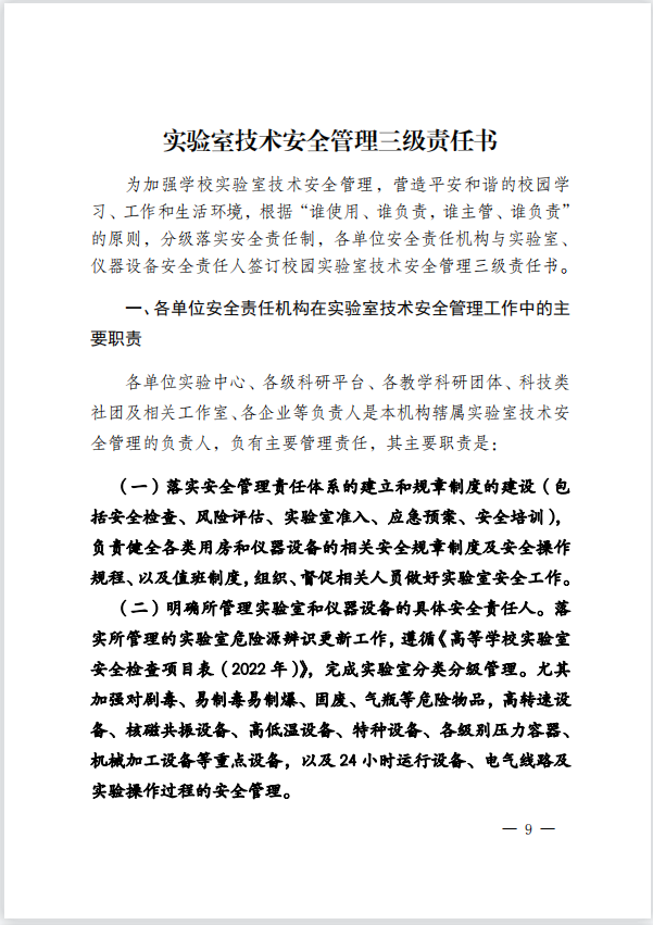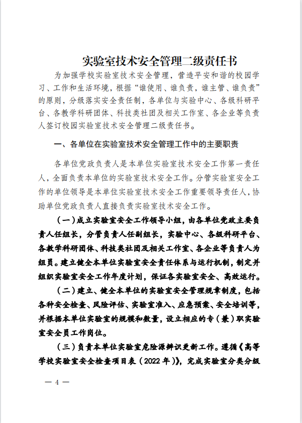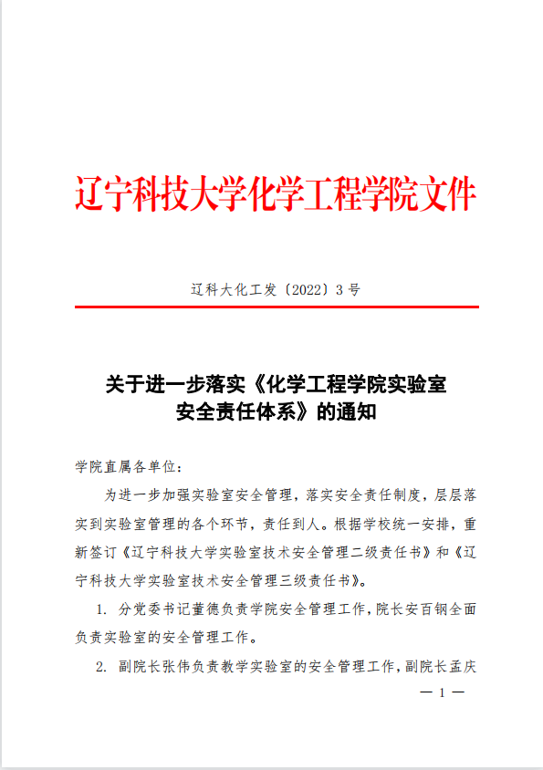 关于进一步落实《化学工程学院实验室安全责任体系》的通知