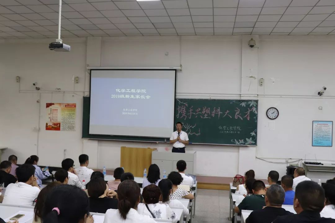 8月31日,化工学院于博学楼A301教室召开2019级新生家长会。化工学院党委书记董德、学办主任兼团委书记蔡秀亮、团委副书记兼2019级辅导员李世新、2019级辅导员金彤和2019级新生家长参加了本次会议,本次大会由蔡秀亮主持。