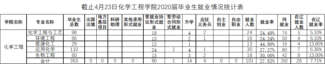 截止4月23日化学工程学院2020届毕业生就业情况统计表