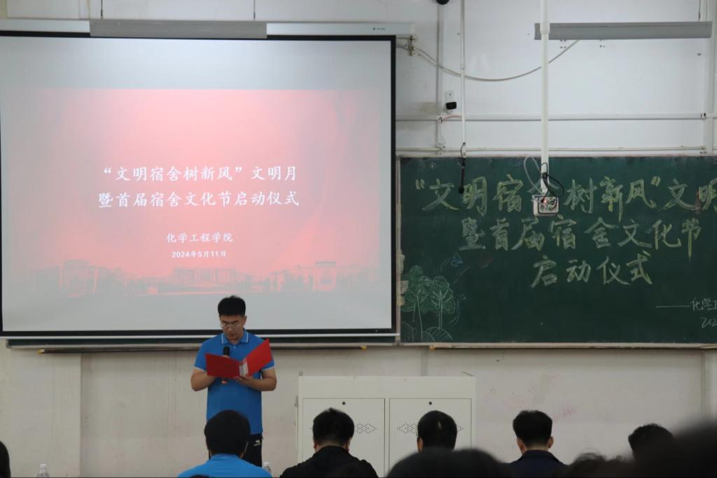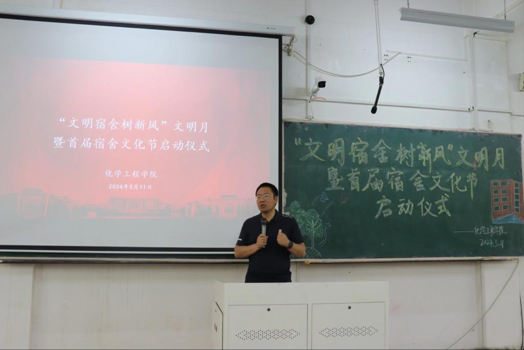 为巩固“一站式”学生社区建设成果,促进学生养成良好卫生习惯和健康生活方式,把学生宿舍建成精神文明阵地,强化学生文明意识、劳动意识、集体意识、安全意识和实践能力,化工学院于5月11日在博学楼C202 教室隆重召开2024年“文明宿舍树新风”文明月暨首届宿舍文化节启动仪式。化工学院辅导员代表、学生骨干和寝室长参加。
