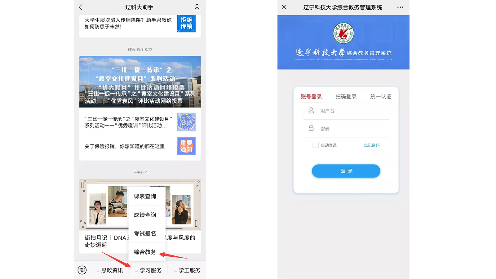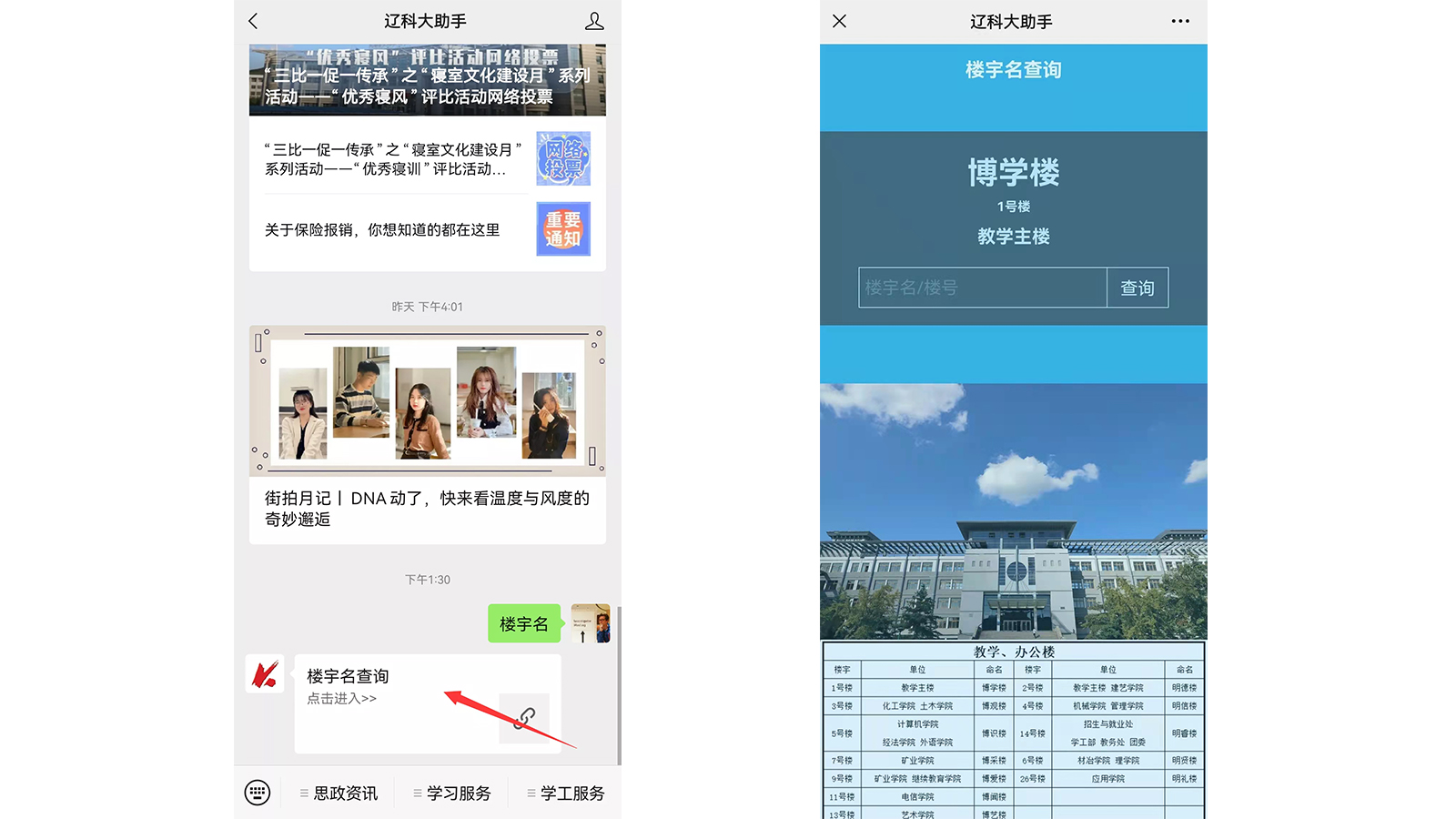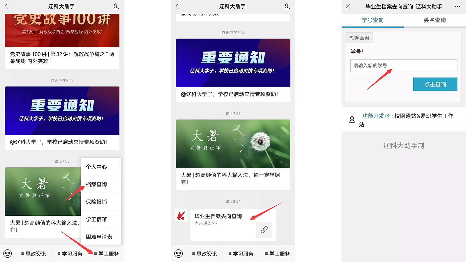 为进一步深化党史学习教育,落实学校“我为师生办实事、争作贡献促振兴”实践活动要求,党委学生工作部官方微信公众号“辽科大助手”特别推出“一站式”查询、报名等十项服务,为同学们学习、工作、生活提供便利,把实事办到实处。各项服务功能具体使用步骤如下: