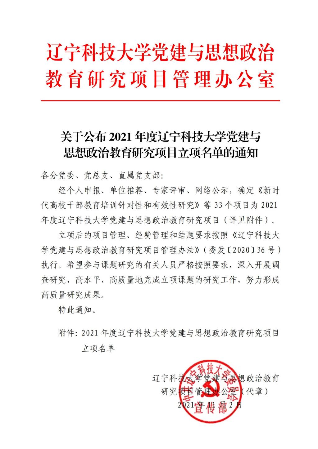 关于公布2021年度安博官网线上平台党建与思想政治教育研究项目立项名单的通知