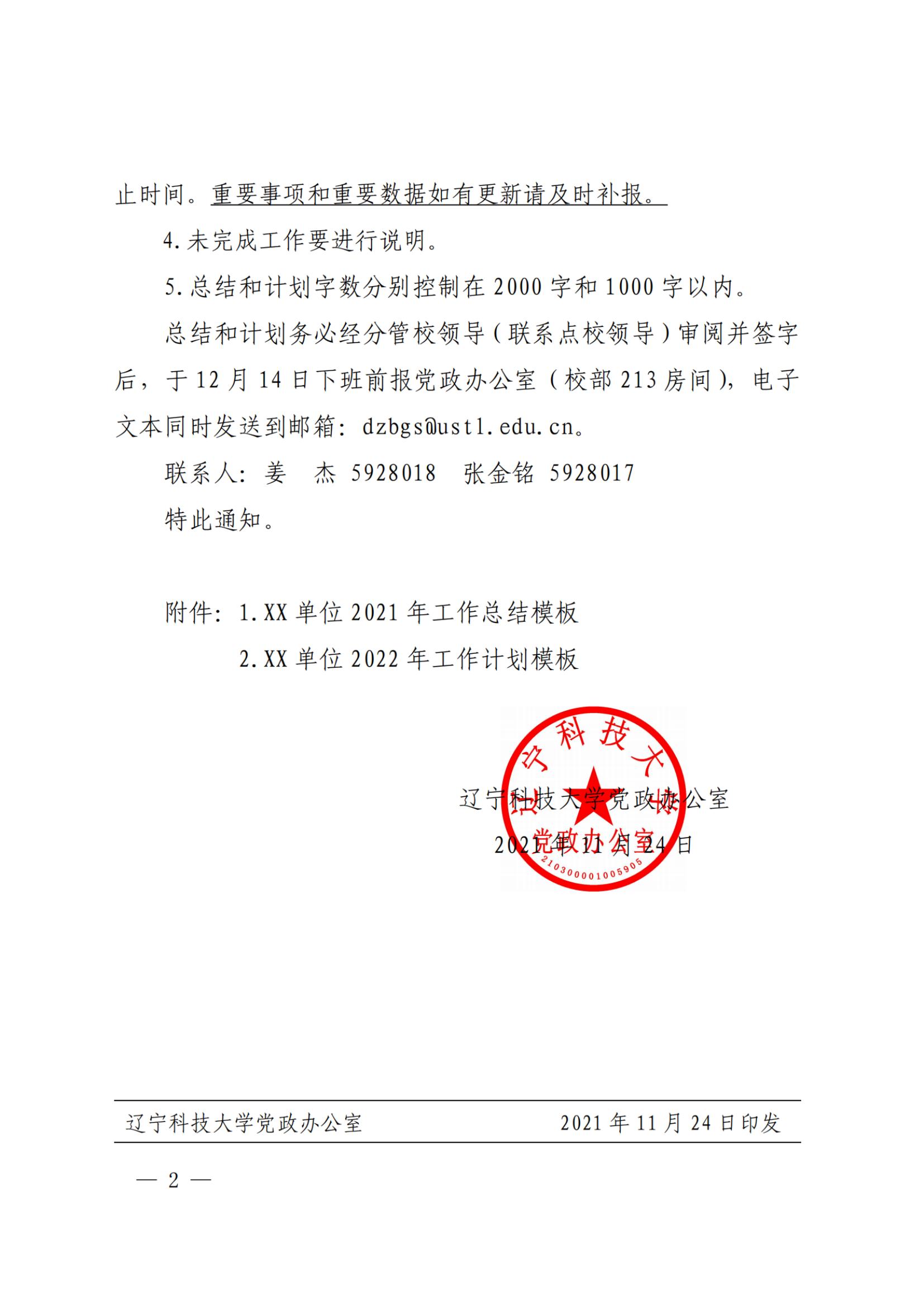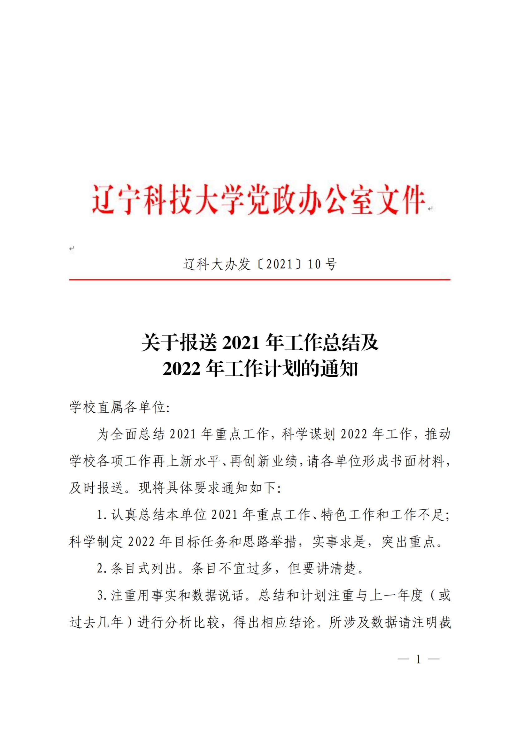 关于报送2021年工作总结及2022年工作计划的通知