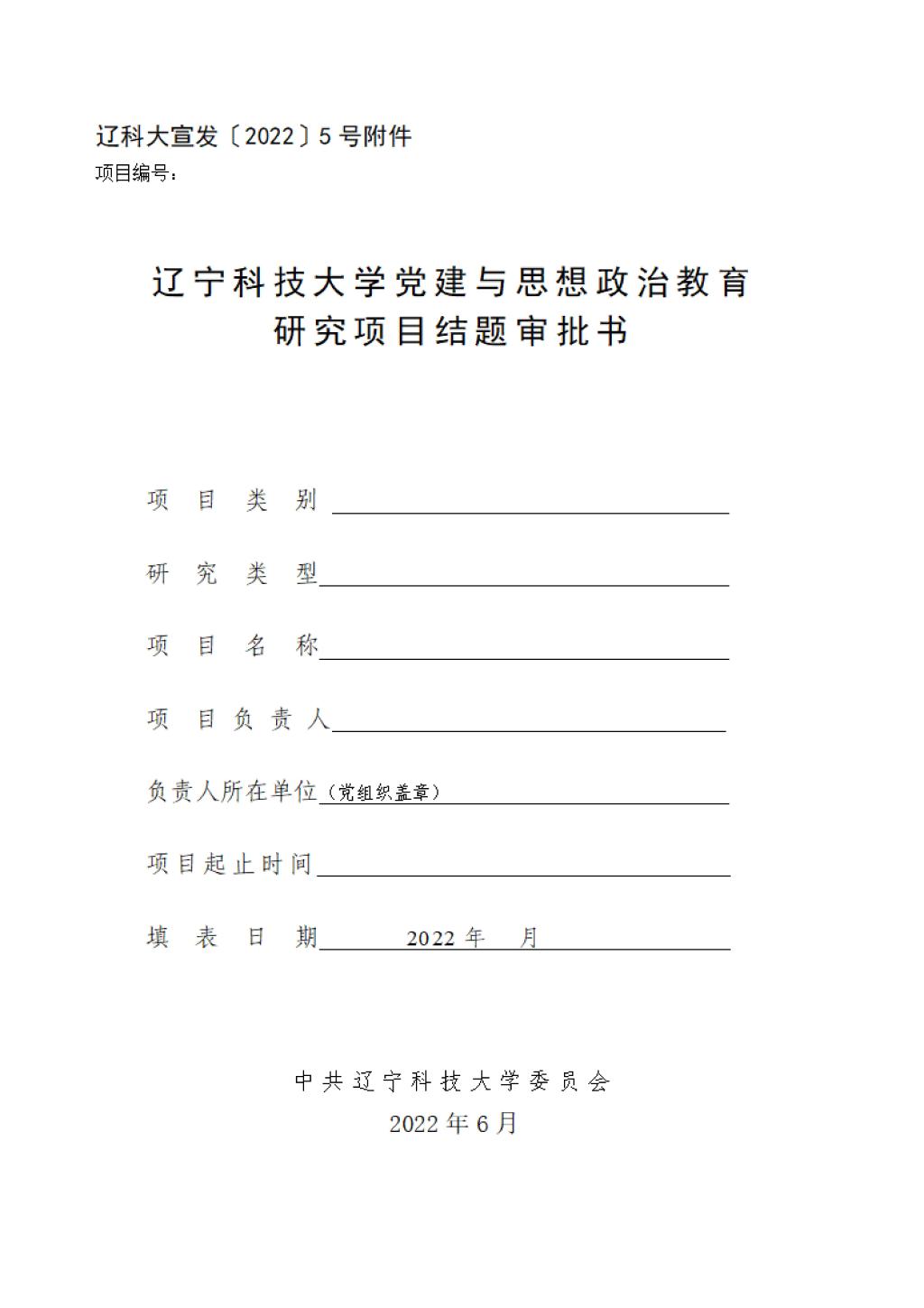 辽科大宣发〔2022〕5号附件 2020年度安博官网线上平台党建与思想政治教育研究项目结题审批书.doc
