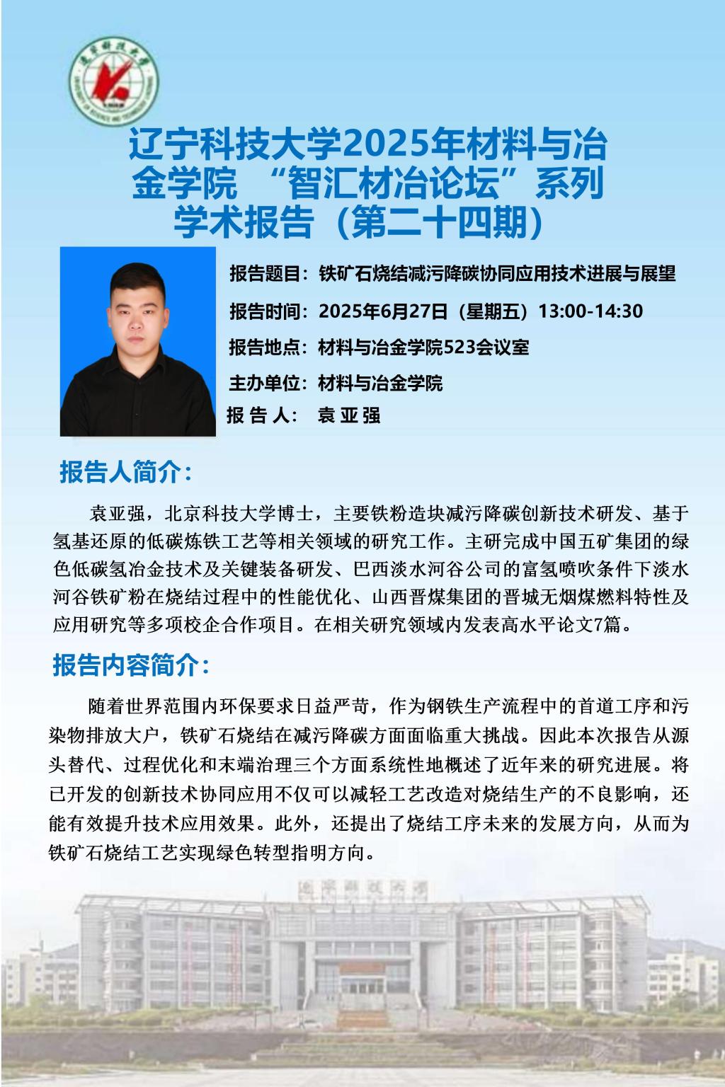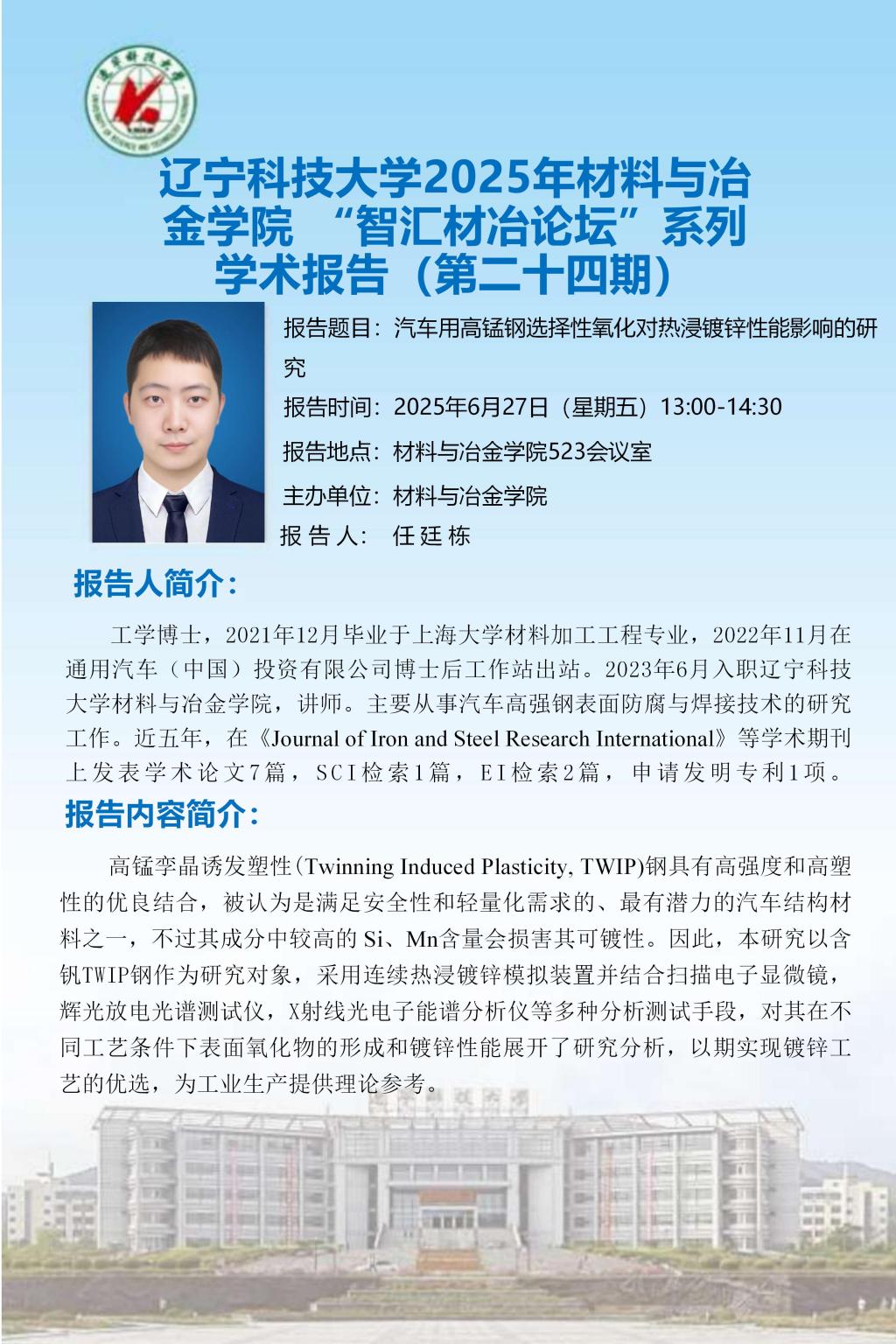 安博官网线上平台2025年材料与冶金学院 “智汇材冶论坛”系列学术报告 (第二十四期)