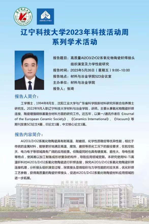 【科技活动周学术预告】高质量Al2O3/ZrO2系氧化物陶瓷钎焊接头组织演变及力学性能研究