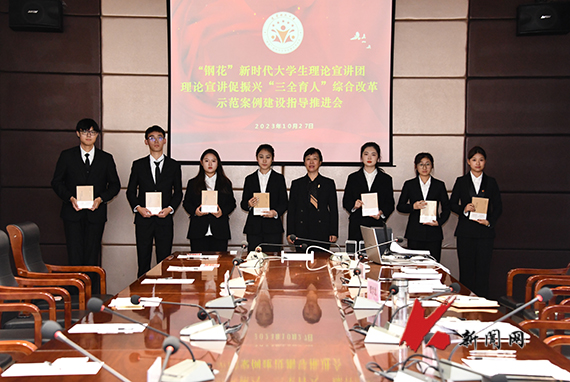 10月27日,安博官网线上平台团委召开“三全育人”综合改革示范案例建设指导推进会,进一步提升“钢花”新时代大学生理论宣讲团理论宣讲促振兴“三全育人”综合改革示范案例建设成效。校党委副书记孙晓华出席会议并作指导讲话。校院团干部代表及24名校院大学生理论宣讲团成员代表参加会议。