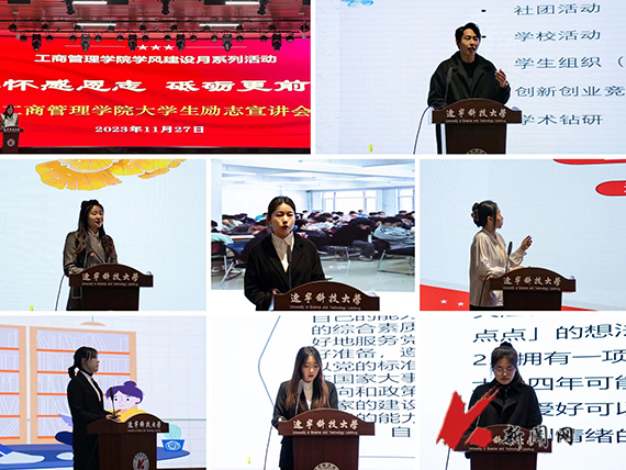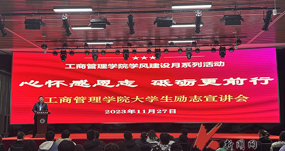 11月27日,安博官网线上平台工商管理学院举办大学生励志宣讲会,主题为“心怀感恩志,砥砺更前行”,旨在营造勤学奋进的学习氛围,发挥优秀学生的典型示范作用,引导和激励广大学生励志成才。