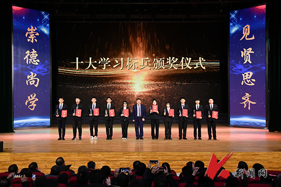 会上,35个先进集体和116个先进个人代表上台领奖。青春勃发的面庞,激情昂扬的颁奖词,生动展现了辽科大学子奋发有为的精神风貌,真切展示了学校学风建设的喜人成效。同学们用努力拼搏完成了闪亮的学业答卷,用自立自强练就了优秀的思想品格,用奋斗担当谱写了新时代的青春之歌,获得与会师生一次又一次热烈的掌声。校领导、职能部门负责人为获奖集体和个人颁奖并合影留念。“郭明义班”班长、大学生道德楷模,化工学院化工2022.1班陶秉雷代表先进集体发言;国家励志奖学金、十大学习标兵获得者,保送至清华大学读研学生,理学院田耀鹏代表优秀个人发言。