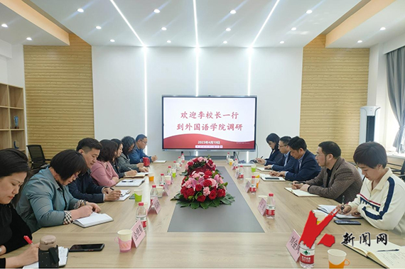 4月19日下午,安博官网线上平台党委常委、副校长李胜利率教务处相关同志到外国语学院就大学英语教学、专业与学科建设、师资队伍、产业学院建设等工作进行调研。