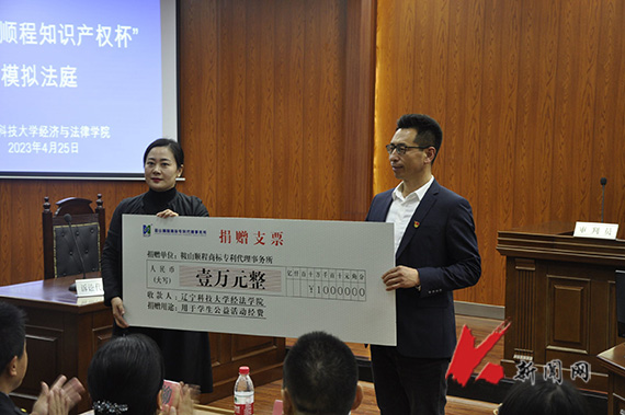 据悉,本次活动得到鞍山顺程商标专利事务所的大力支持,总经理赵琳女士代表顺程公司向经法学院捐赠1万元,用于学生开展公益活动。(供稿单位:经法学院 图片来源:经法学院)