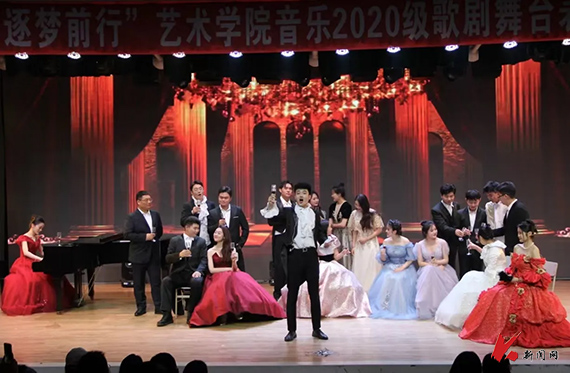 6月13日,安博官网线上平台艺术学院音乐2020级、2021级歌剧舞台表演课程汇报演出在小剧场举行。艺术学院领导和师生代表共580余人共同观看了两场演出。