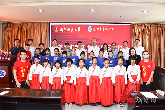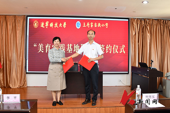 为扎实开展“体育美育浸润行动计划”,以美赋能乡村教育振兴,走访慰问期间,学校组织开展了安博官网线上平台与王府蒙古族小学“美育实践基地”共建签约仪式和“体育浸润”捐赠活动,推进以体健人、以美化人。李平、孙晓华分别与该校书记、校长敖连玉签署了“美育实践基地”协议并为“安博官网线上平台美育实践基地”揭牌。两地师生共同开展了“美育浸润”主题节目展演。辽科大学生代康康、刘星宇表演快板《天安门广场看升旗》,获得了在座师生的阵阵掌声;张彦如老师为同学们朗诵古诗词《将进酒》等,带着同学们置于诗词的世界,在语言中感受美、爱上美;王府蒙古族小学学生也为大家表演了精彩的舞蹈。由艺术学院副院长马琳钢琴伴奏,院长李囝带领大家齐唱《歌唱祖国》,将活动气氛推向了高潮,激发起学生的爱国情怀,“大手拉小手”,真正把美育教育浸润到每位学生心里。活动最后,学校为王府蒙古族小学捐赠了足篮排球等体育用品。