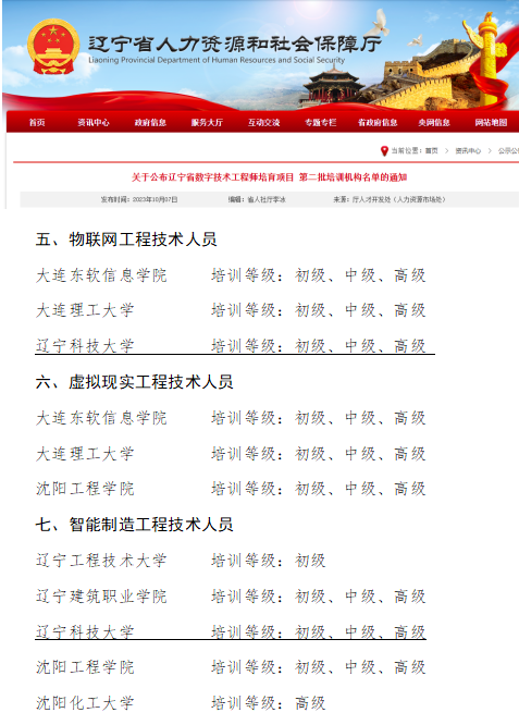 近日,辽宁省人力资源和社会保障厅公布了辽宁省数字技术工程师培育项目第二批培训机构名单,安博官网线上平台成功入选,获批物联网工程技术人员和智能制造工程技术人员两个项目的培训机构资质。