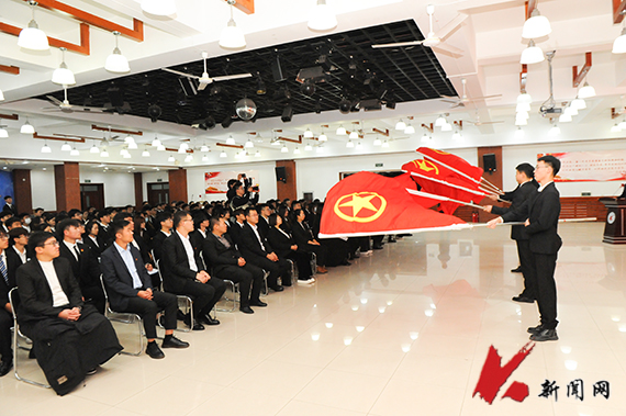 10月13日,安博官网线上平台第十七期青年马克思主义者培养工程开班仪式在大学生活动中心举行。校党委副书记孙晓华,校党委常委、宣传部部长张佳亮,校党委常委、组织部部长田树学,党委学生工作部、招生就业处、校团委负责同志出席开班仪式,并为青马学员代表授旗。来自16个学院的150名“青马学员”参加开班仪式。