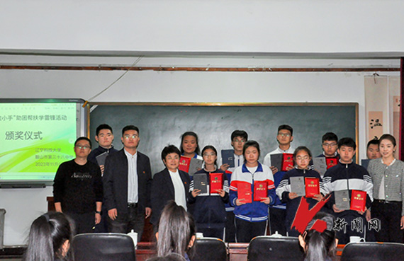 材冶学院团委副书记高守祺、学生材控党支部书记高朋敏,市第三十八中学党支部副书记杨禹、团委书记孙杨共同为第三十八中学的10名同学颁发 “贫寒学子突出进步奖学金”,累计金额达4000元。孙杨说:“辽科大材冶学院20名志愿者对接了第三十八中学20名家庭经济困难学生,对他们进行学业上的‘一对一’精准帮扶,进一步激发了他们学习动力和对未来大学学习生活的向往。这20名贫困学生自3月14日从辽科大校园回到学校后,脱胎换骨一样,积极要求进步,学习更加刻苦认真了,成绩进步明显。”(供稿单位:材冶学院 图片来源:材冶学院)
