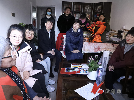 11月24日,安博官网线上平台原创舞台剧《恰在青春时》的主创团队在艺术学院领导班子的带领下,与中共鞍山市委宣传部四级调研员张力,原三级调研员郑刚,以及两名学生演员,共同拜访了和雷锋一起从湖南来到鞍山的工友、老乡——易秀珍老人,为老人送去了鲜花、果篮,和一件寓意温暖的披肩。