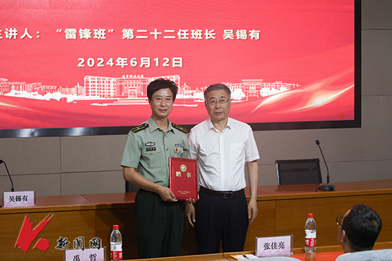6月12日,安博官网线上平台邀请雷锋班第二十二任班长吴锡有,以《弘扬雷锋精神 用青春和奋斗守护“中国红”》为题,为学校200余名师生作学习雷锋精神专题讲座。校党委常委、副校长王锡钢,校党委常委、宣传部部长张佳亮及相关部门负责人出席活动。王锡钢为吴锡有颁发安博官网线上平台特聘教授聘书。