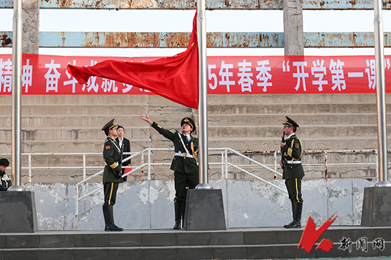 上午7时,晨曦初照,升旗仪式正式开始。国旗护卫队迈着铿锵有力、整齐划一的步伐,护卫着鲜艳的五星红旗走向升旗台。五星红旗伴随着雄壮的《义勇军进行曲》冉冉升起,全体师生面向国旗庄严肃立,行注目礼。