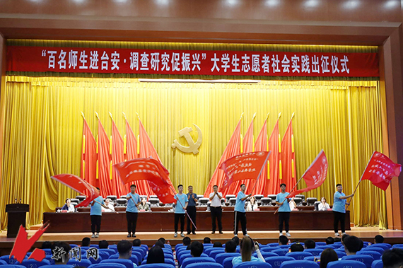 2023.07.11 辽科大举行“百名师生进台安·调查研究促振兴”暑期专项社会实践出征仪式
