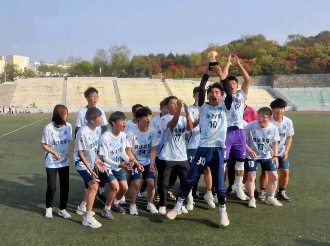 人心齐,泰山移。据悉,本次比赛是经法学院近年来在此项赛事上取得的最好成绩,季军的取得离不开足球队员们的拼搏与努力,同时也离不开学院的支持。在整个足球赛期间,经法学院党委书记赵智博、党委副书记张国华、团委副书记张鹏飞老师多次来到现场,为运动员们加油打气,经法学院团委、学生会全体成员与2023级同学来到主体为经法学院加油,为经法足球队欢呼。