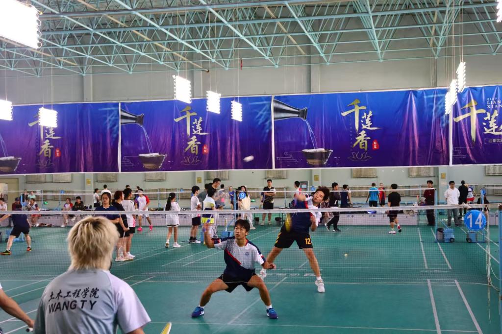 球馆内,比赛如火如荼的进行着,经法学院的羽毛球健儿们身姿矫健,每一次挥拍,都凝聚着智慧与力量,每一次接球,都来自长久的练习,所有的光芒,都来自不懈的努力,隔网对打,每一次博弈,都是一种青春的碰撞。他们全神贯注、动作敏捷,轻盈的跳跃、精准的扣杀、巧妙的救球,不断将比赛推向高潮。观众们热情洋溢,为选手们的精彩表现欢呼雀跃,现场气氛热烈非凡。