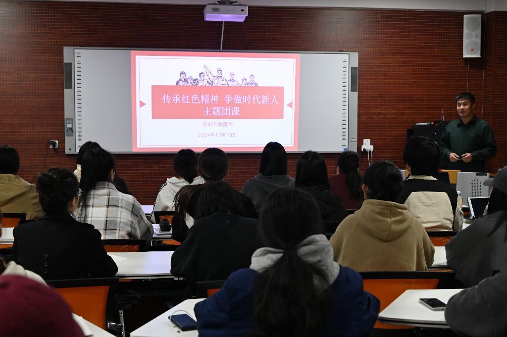 学院团委副书记张鹏飞为学员们上“传承红色精神 争做时代新人”主题团课。他从大钊精神的形成、内涵、现代发展三个方面进行讲解,并通过视频形式,引领大家深刻领悟李大钊坚定不移的爱国主义情怀、坚定的理想信念以及无私的奉献意志。张鹏飞引用习近平总书记对新时代青年的寄语,鼓励同学们坚定不移听党话、跟党走,怀抱梦想又脚踏实地,敢想敢为又善作善成,立志做有理想、敢担当、能吃苦、肯奋斗的新时代好青年,让青春在全面建设社会主义现代化国家的火热实践中绽放绚丽之花。