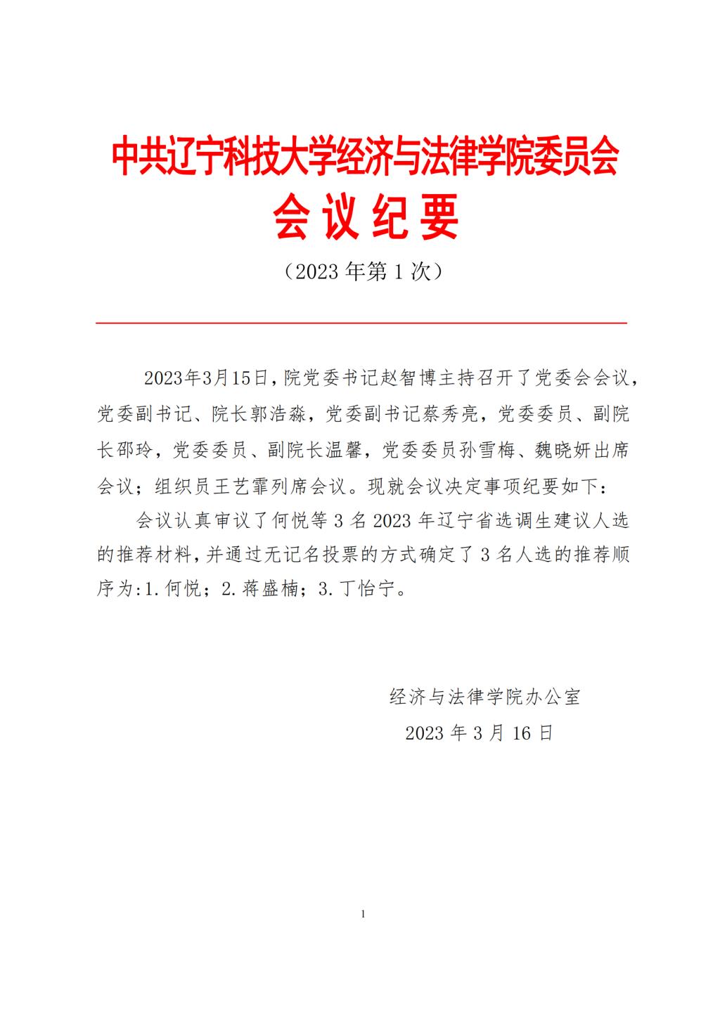 中共安博官网线上平台经济与法律学院委员会会议纪要(2023年第1次)