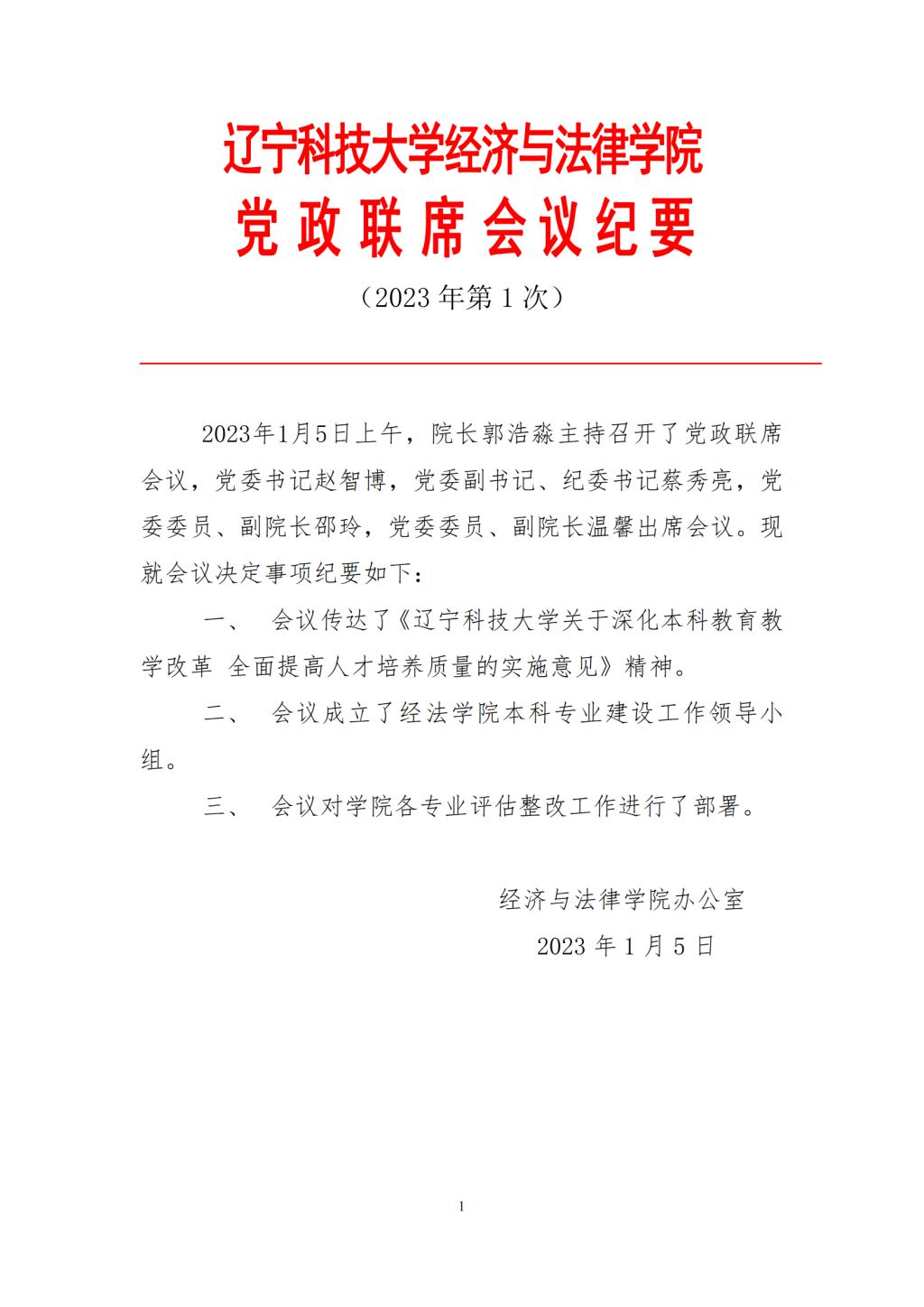 安博官网线上平台经济与法律学院党政联席会会议纪要(2023年第1次)