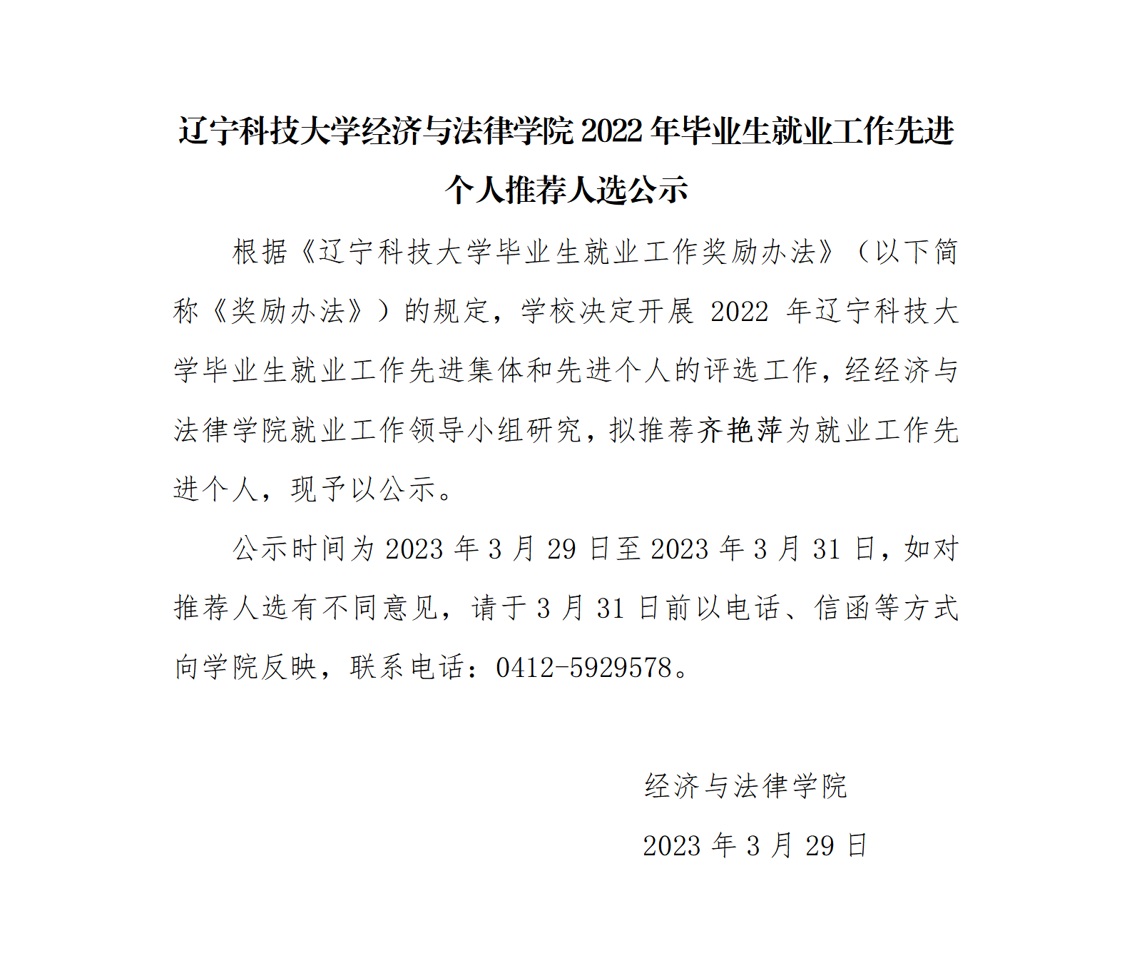安博官网线上平台经济与法律学院2022年毕业生就业工作先进个人推荐人选公示