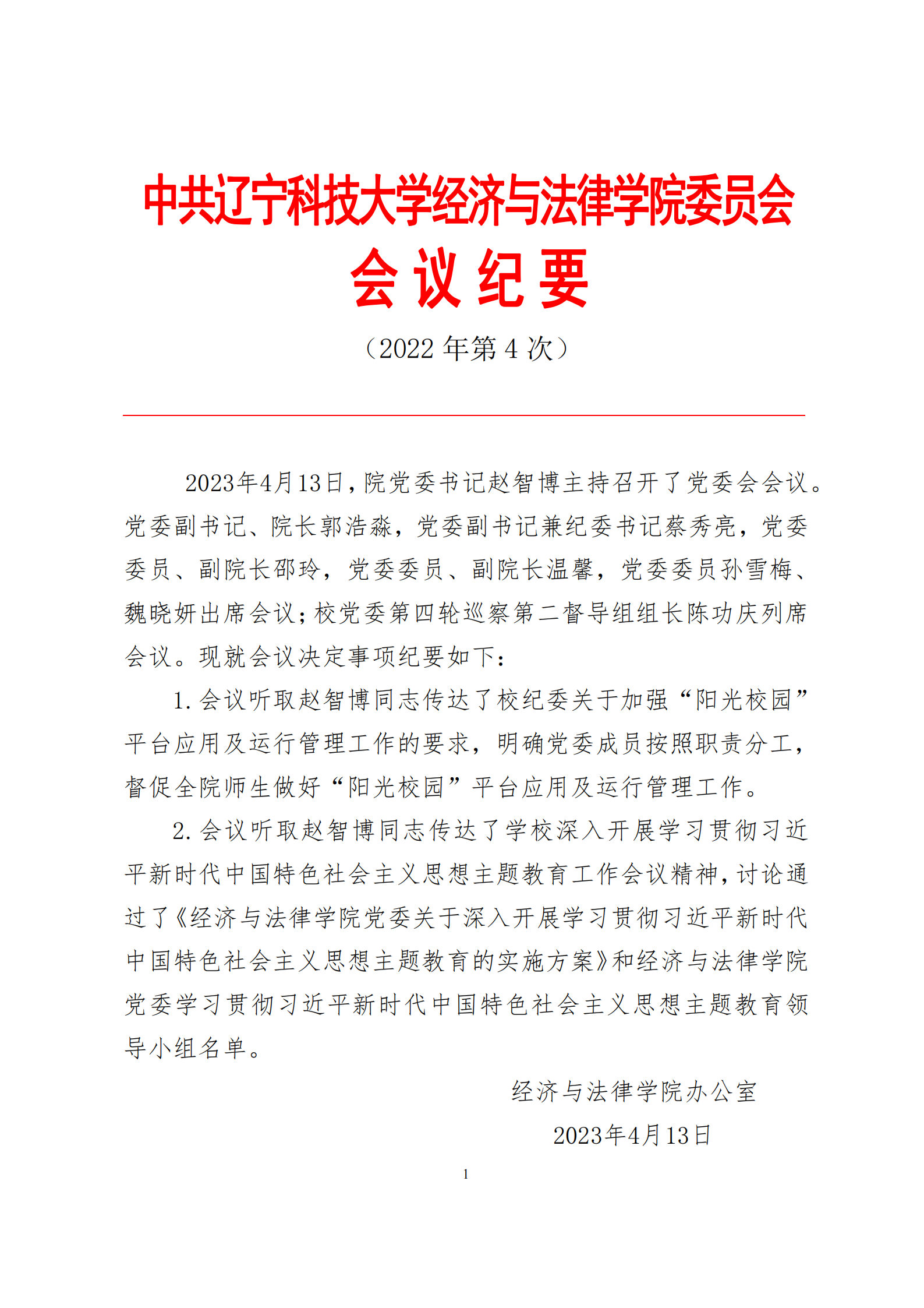中共安博官网线上平台经济与法律学院委员会会议纪要(2023年第4次)