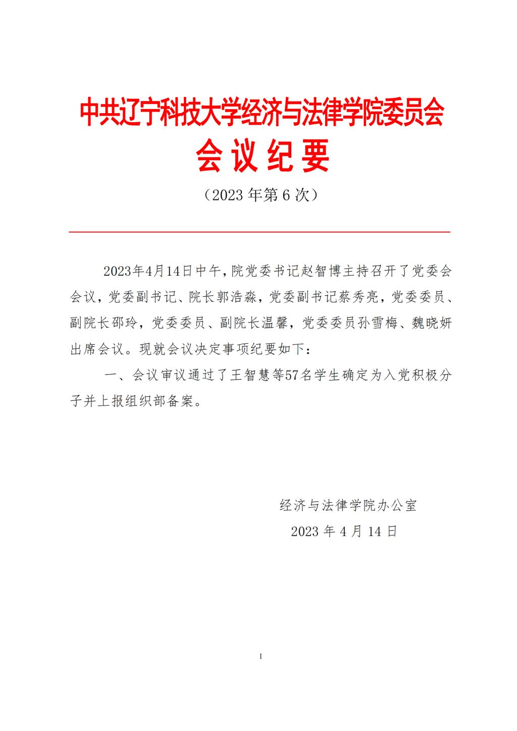 中共安博官网线上平台经济与法律学院委员会会议纪要(2023年第6次)