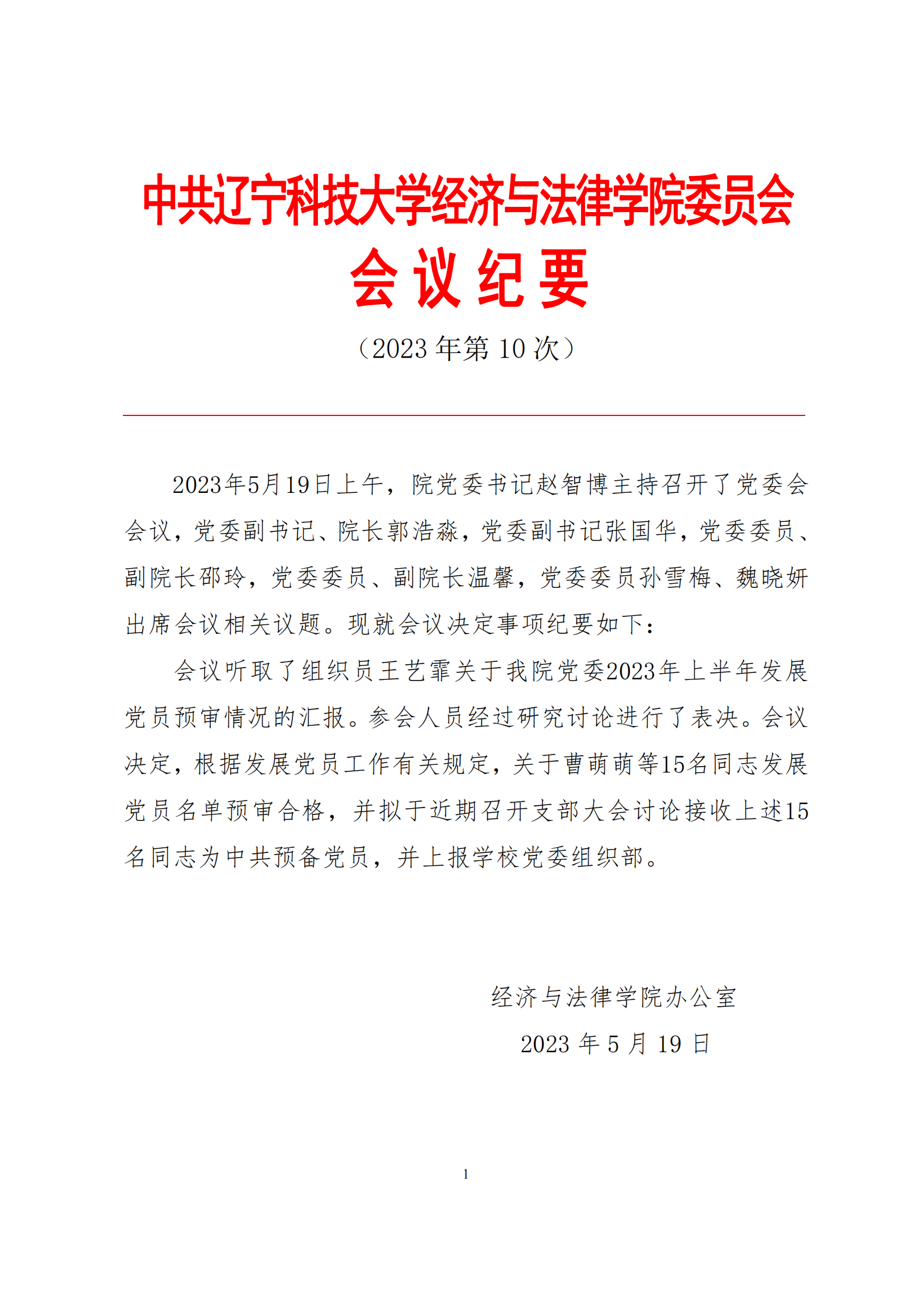中共安博官网线上平台经济与法律学院委员会会议纪要(2023年第10次)