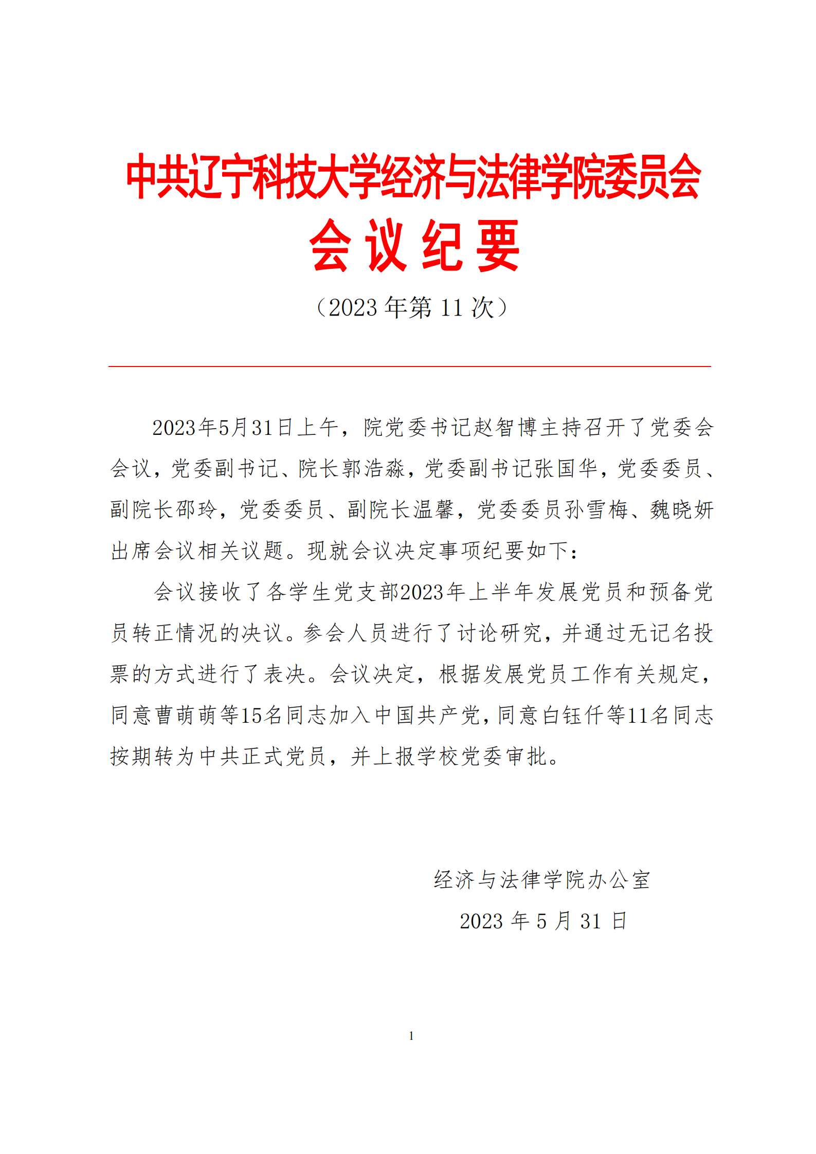 中共安博官网线上平台经济与法律学院委员会会议纪要(2023年第11次)